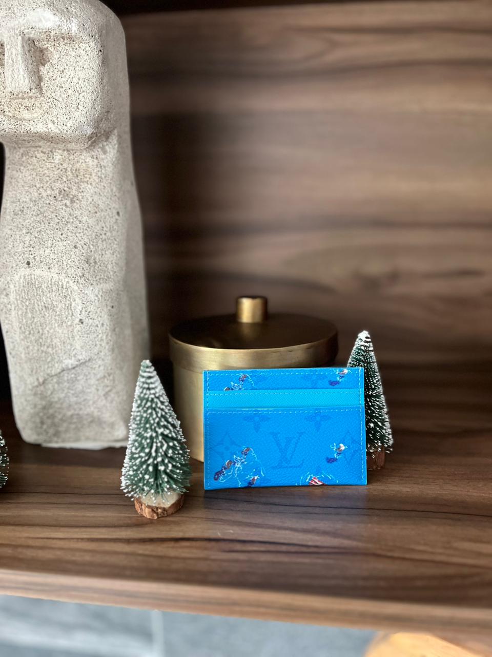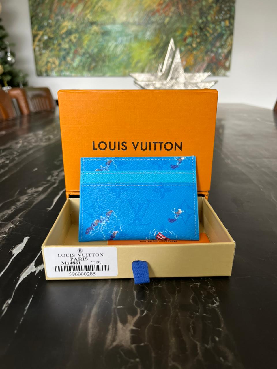 Eleva tu estilo con este elegante tarjetero inspirado en Louis Vuitton, edición especial con un diseño de personas nadando sobre el icónico patrón LV. Su estética moderna y artística lo hace destacar entre cualquier accesorio, manteniendo siempre un toque de lujo.